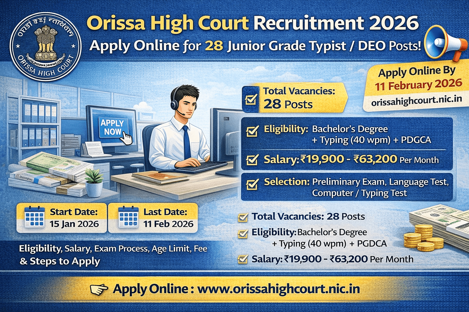 Orissa High Court Recruitment 2026: The High Court of Orissa, Cuttack has issued an official notification (Advt. No. 01/2026) inviting…